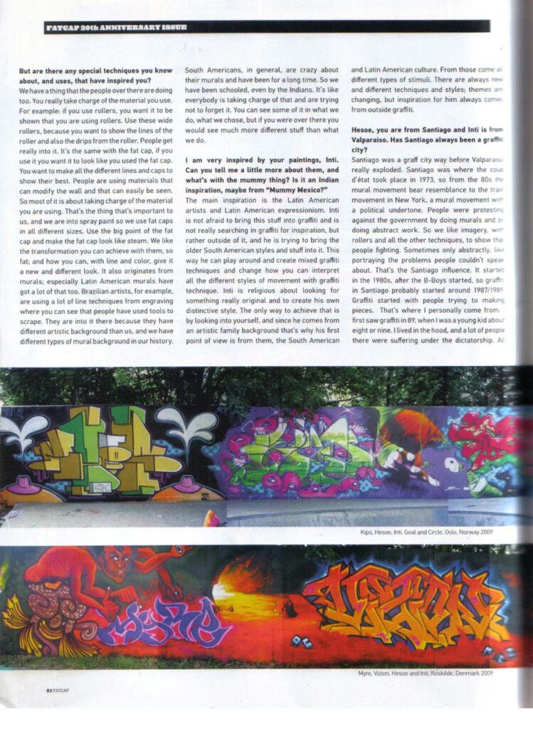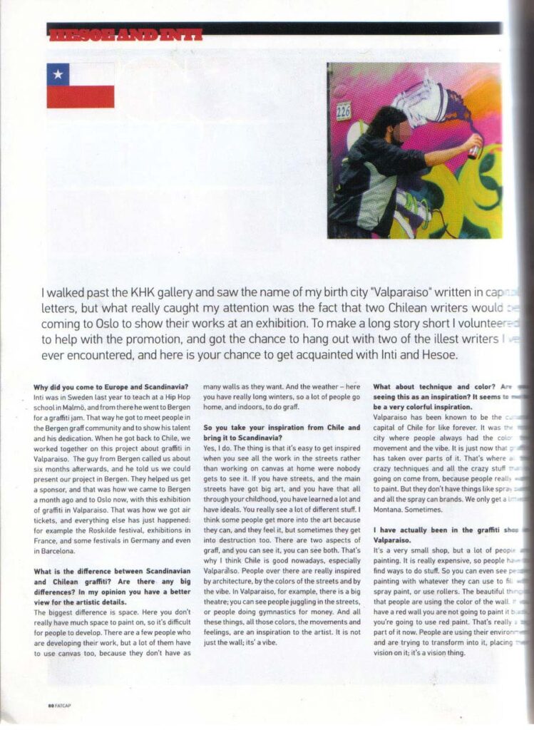 Entrevista a Hesoe & Inti durante la expo Graffiti Porteño en Oslo, Noruega por Goal de FatCap Magazine.